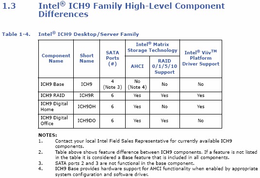 Наборы микросхем на базе ICH9, ICH8, ICH7 и ICH6, а также наборы микросхем на базе ICH5 и ICH5R не используют AHCI. »