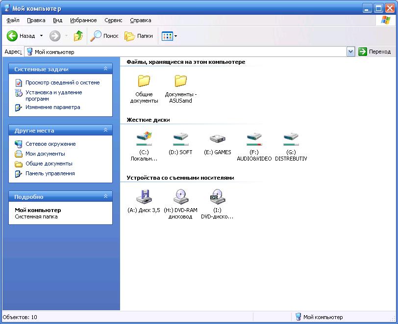 H и I - новых иконок для CD-DVD приводов в аддоне не предусмотрено. Для пропатчивания этих ресурсов есть специальные аддоны. E - причина неизвестна. Что за диск? Как подключен? Возможно, на диске вирус... |