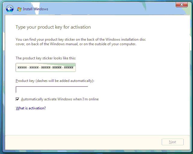 Дело втом, что если не ввести ключ продукта, кнопка [Next] затемнена т.е. на неё нельзя нажать, может я что-то не так делаю?