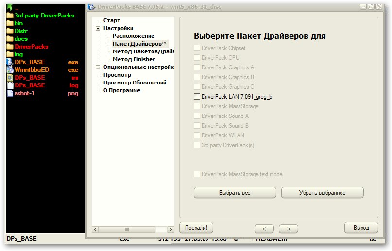 Если же пользуешься Башратовским DPs_BASE, то и драйверпаки надо брать от Башрата tyt z_drv_inst - это аддон, клади в папку Addons Все драйвера и должны лежать в D, принято стандартное расположение: D\G\ - видеокарты D\L\ - сетевые карты D\3\ - сторонние драйвера и т.д. |