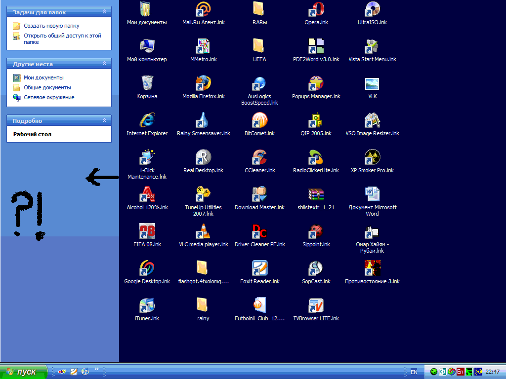 Интерфейс - Странное явление на рабочем столе в Windows ХP SP2 Proofessional VLK