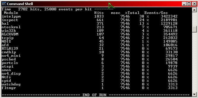 Драйвера переставлять/обновлять пробовали? Можно выяснить, какой драйвер отъедает ресурсы процессора. Либо с помощью Kernrate (из Windows Server 2003 Resource Kit Tools), либо RATTV3. Kernrate попроще, видимо. Надо дождаться момента, когда будет высокий процент DPCs, запустить Kernrate (из командной строки), подождать несколько секунд и закончить Ctrl + C. Если использовать RATTV3, там логи создаются программой \Program Files\Microsoft\RATTV3\cswa.exe и пишутся в папку \WINDOWS\system32\LogFiles\RATTV3. P. S. В этой теме (43 страницы) большинство жалоб на видеокарты NVIDIA. |